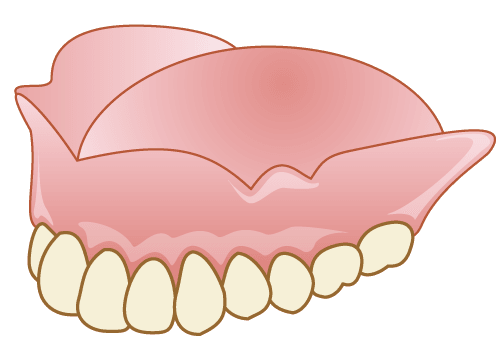 総入れ歯総入れ歯とは、歯が一本も残っていない場合の治療法です。プラスチックの土台に人工歯が固定されており、それを歯茎に装着します。